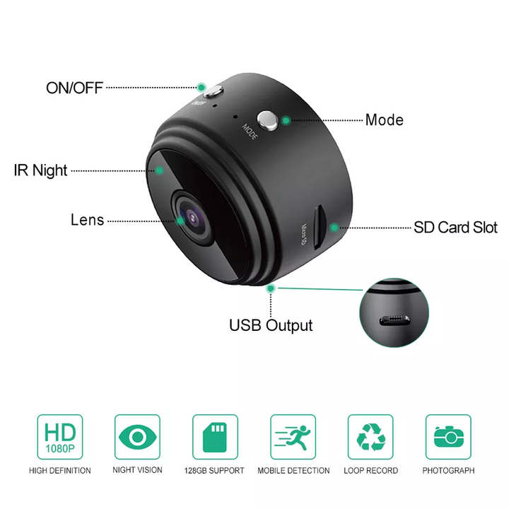 The A9 Mini Wireless Outdoor Monitoring Camera is a compact, weather-resistant wireless camera ideal for outdoor monitoring and sports use. Lightweight and portable, it delivers real-time video, easy installation, and reliable performance for security or action-packed adventures.